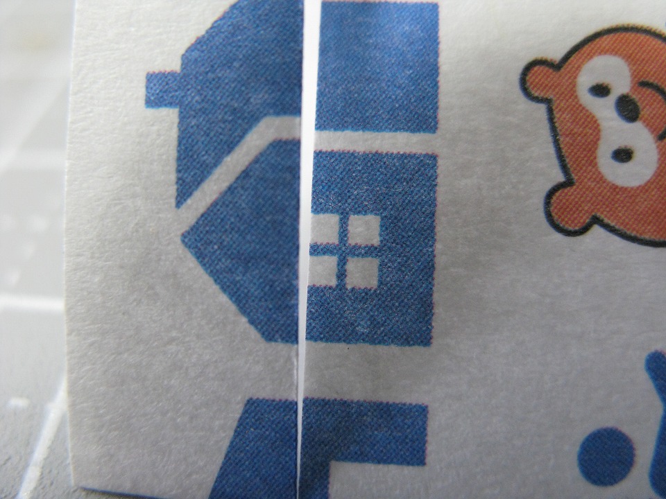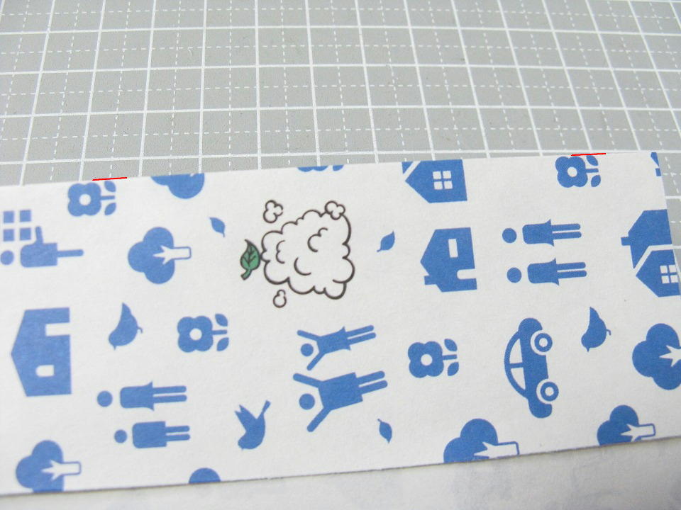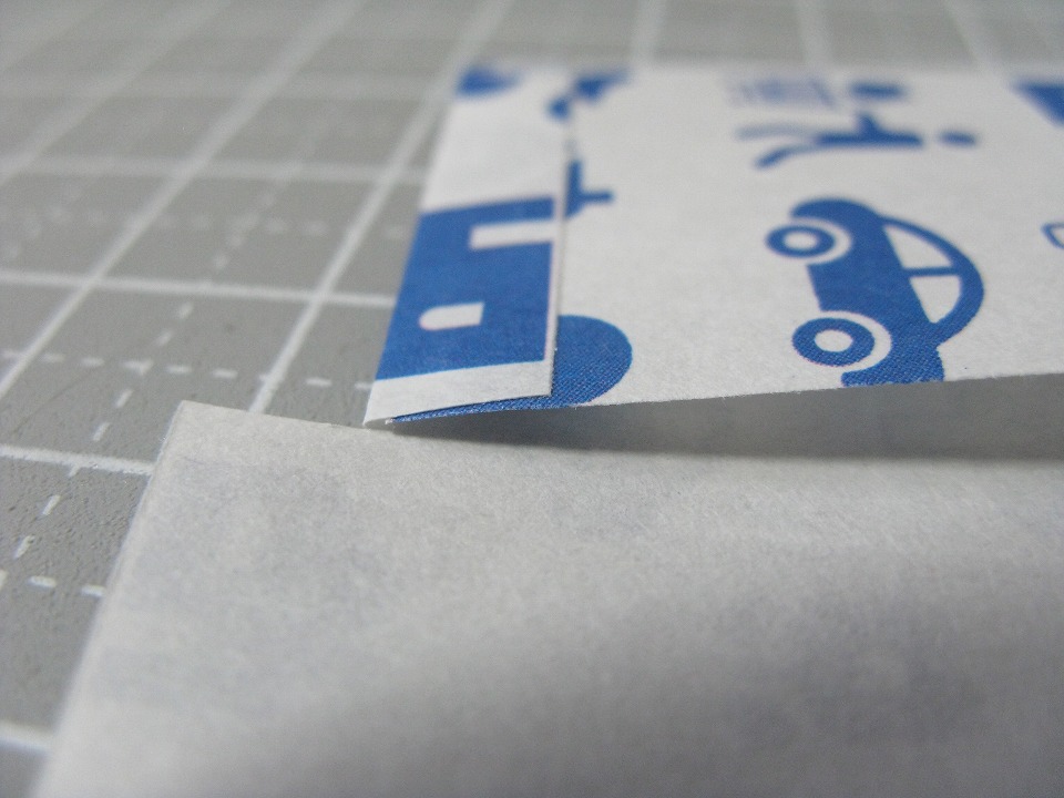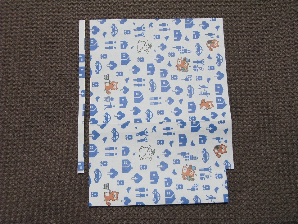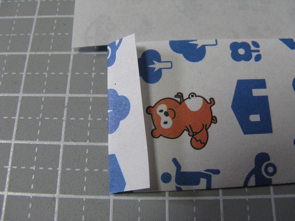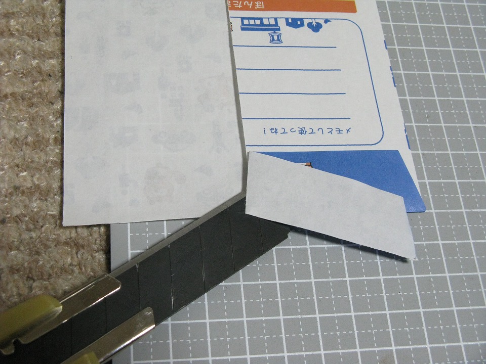| 残り1枚は、裏面の一部を余白として残して切る。 この余白は「のりしろ」なので、糊が塗れる程度でよい。 |