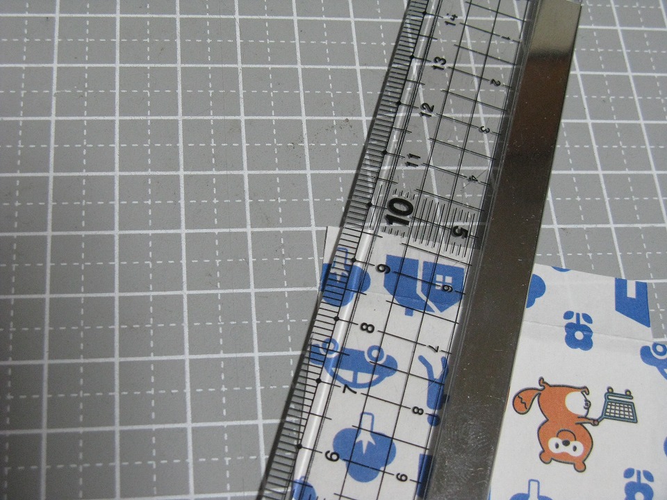 | カッターで斜めに切りにくい場合は、定規を使えばいい。 |