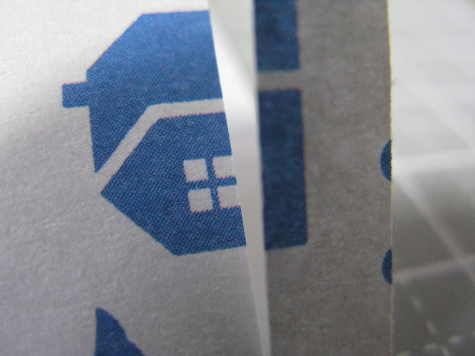 | 「のりしろ」に糊を塗って、もう1枚(=裏面を完全に切り取ったヤツ。)を貼り合わせる。 |