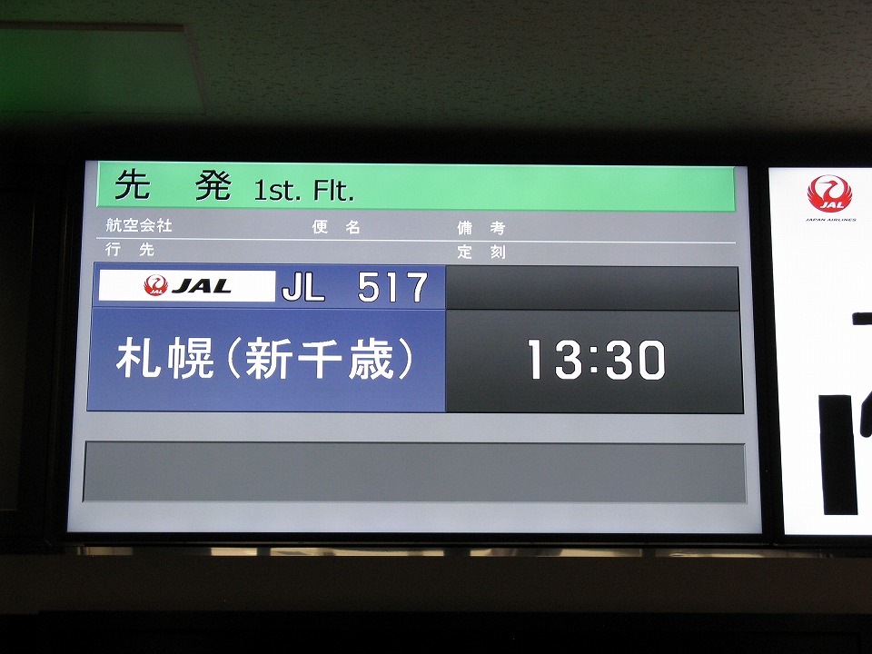 | 新幹線「あさま」と、大宮から鈍行のロザで品川に出て、京急に乗り継いで羽田に着いた。 いつもなら、やいま方面の南ウイングへ向かうのだが、今回は札幌(新千歳)だから北ウイングだ。 |