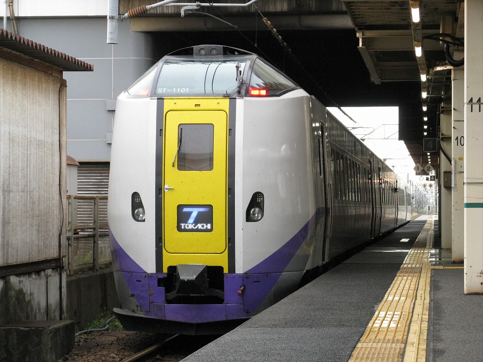 | ということで「とかち8号」が到着。キハ261系1000番台。 約20秒の動画はこちら。 |