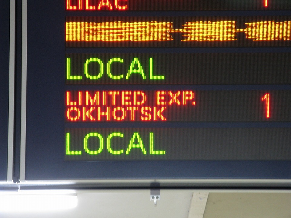 | 「オホーツク」はロシア語なので、表記もロシア語の「OKHOTSK」なのだ。 国鉄時代からの伝統?だね。 |