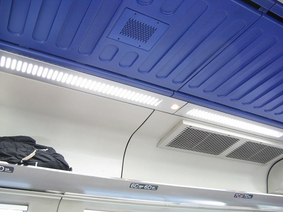 | キハ261系0番台のスピーカーは天井の中央にあるので、 音声を収録するに当たっては、左右どちらの座席がよい、ということはない。席の番号だけ気にすればよい。 今回は俺は5Aだったので、スピーカーが結構近かったんだけど、音量がかなり小さかったため収録には向かなかった。 |