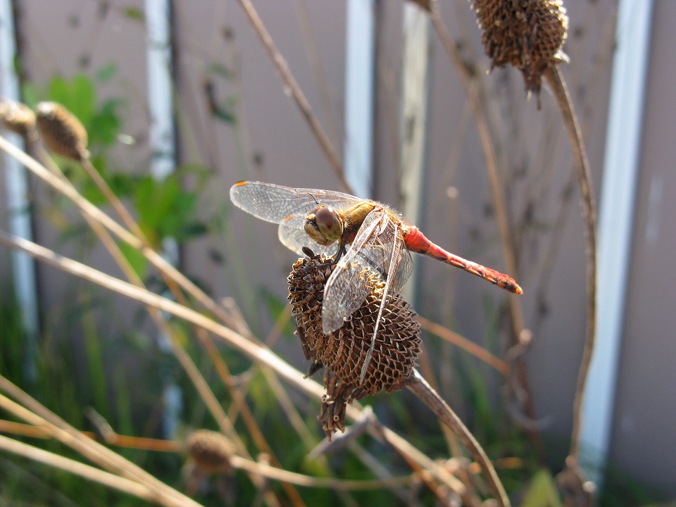 | 赤とんぼ(アキアカネ?)。ブンブンと実にたっくさん飛んでいた。 ところで、10/2の午前の部のイベント参加者はたった1人だけ。 その分じっくり車両を観察することができるもんだから、「MR430」はなかなか動かない。 その間、俺は特に何もすることがなく、10月の旭川とはいえ暑い(後日、気象庁のサイトで確認したらそれでも21℃前後だった。)で ひたすらバスが動き出すのを待っていた。 |