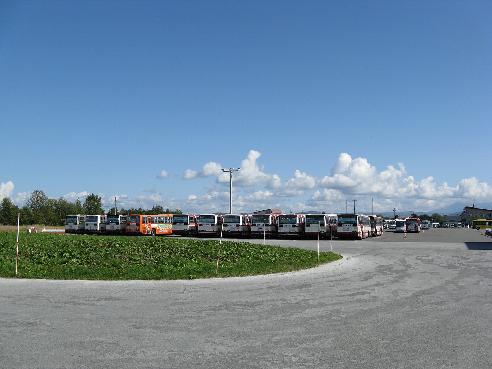| ということで、旭川電気軌道の共栄バスセンターに来た。 旭川駅から路線バスもあるので、バス好きとしては普段なら当然路線バスに乗るのだが、 今回は時間の関係もあり、タクシーに乗った。 ところが、タクシーのじいちゃん運転手は、行先がよく分からないままクルマを走らせたもんだから、ルートにロスがあり、まいった。 そもそも共栄バスセンターを知らなかったので、俺が「旭川東郵便局の南」と伝えたら、今度は、東郵便局への道を間違えるし・・・。 まあ、それでも無事に着いたからよかったけど。 |