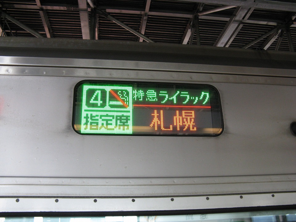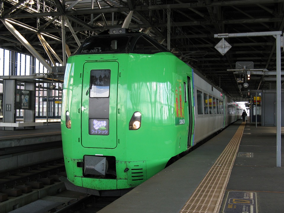 | さて、俺は「ライラック20号」で札幌に戻る。 789系0番台なので、以前「スーパー白鳥」に使われていたクルマだ。 コイツに乗っちまえば、よほどのことがない限りシゴトに間に合うゾ。 |