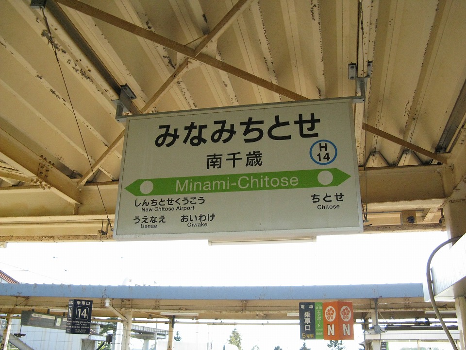 | 新千歳空港直結の駅から、札幌行きの快速「エアポート125号」で隣の南千歳に出る。 空港や駅は、中国系と思われる民族でごった返している(後で確認したら中国の「国慶節」の連休によるものと判明。)。 |