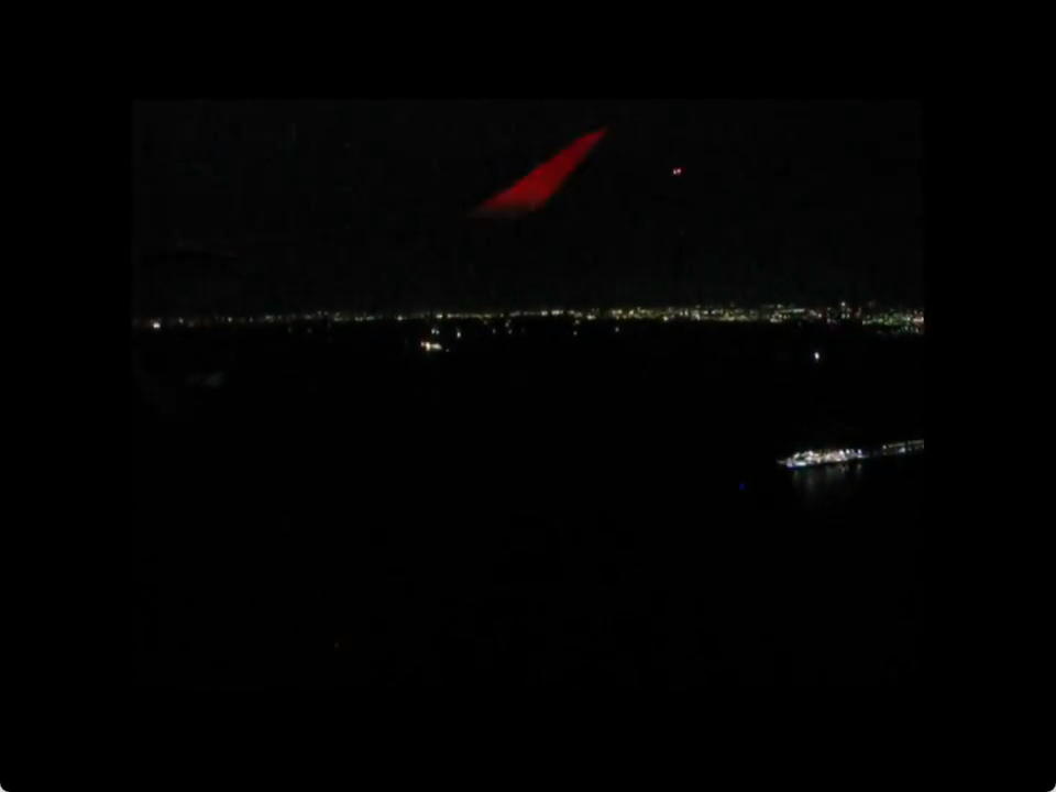 | 機内でぼんやりしていたら、もう千葉県上空に来た。速いねぇ。 海ほたると、後続の着陸機の灯りが見える約1分の動画はこちら。 |