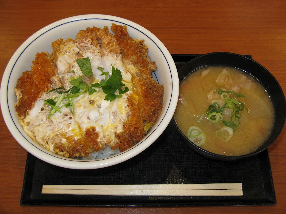 | 遅朝というか早昼。 「かつや」の竹836円ナリと、とん汁小165円ナリ。 |