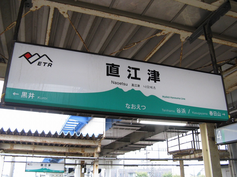 | 直江津は駅は管轄はえちごトキめき鉄道だから、駅名表示板はトキ鉄仕様だ。 |