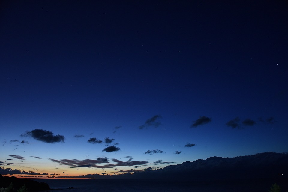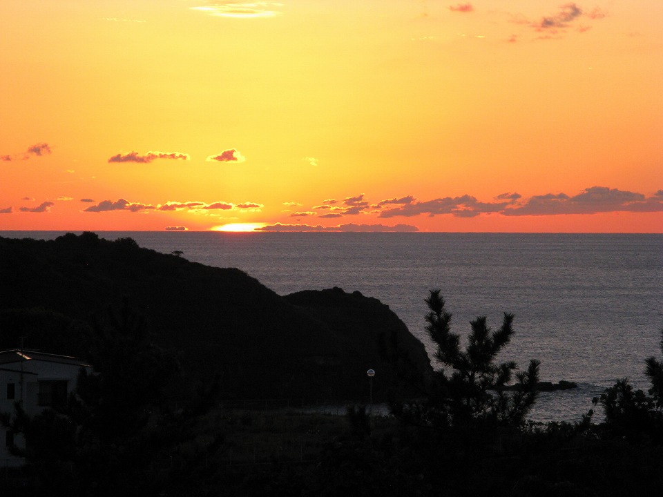 | さて、翌10/24も晴れの予報なので、昨日と同じ場所に来た。 ただ、今日は昼前に病院に行って(ピロリ菌検査の結果は陰性だった(嬉)。こんなこと。ど~でもい~ですね。)、 その後はシゴトを休みにしたので、思いっきり時間があったため、昨日とは違っての~んびり移動した。 撮影ポイントに、昨日より1時間早いほぼ17時ちょうどに着いたら、日没直後だった。 周りにはたくさんの観光客がいて、盛んにスマートフォンで夕景を撮影していた。 観光客のみなさんは、水平線に沈んだと思うかもしれないけど、実際は能登半島に沈んでますからね(笑)。 |