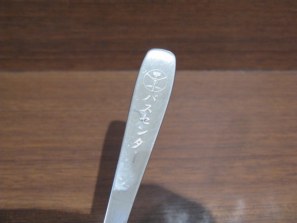 | ここのバスセンターを運営している新潟交通の社章と「バスセンター」の文字が スプーンの柄に刻印されているのを見逃してはいけない。 水滴をちゃんと拭き取ってから撮影するべきだった。ハラが減っていたんでカレーを早く喰いたかったんだよね(苦笑)。 ちなみに、この水滴は、お店の人がこのスプーンを洗って、水滴が残ったままカレーに挿して提供したからなのさ。 |