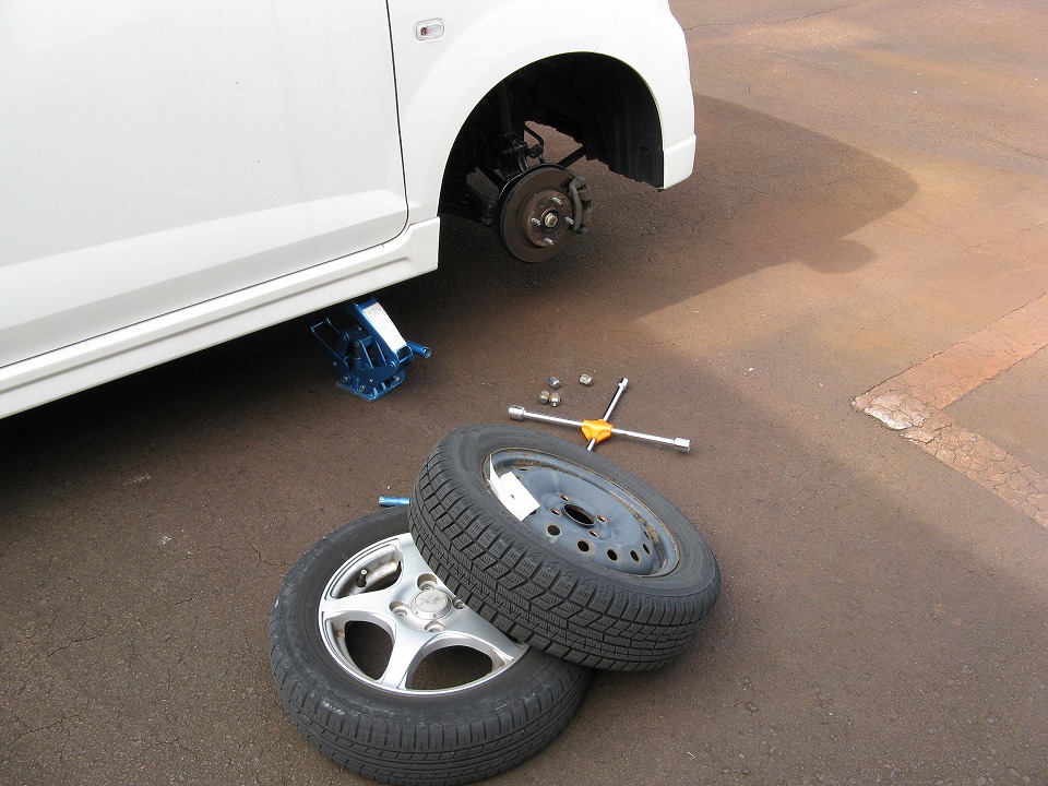 | 朝メシを喰って元気が出たら、ヒマなのをいいことにクルマのタイヤをスタッドレスに交換した。 いつもかなり冬の始まりギリギリまで待つが、今年は早く作業したゾ。 |