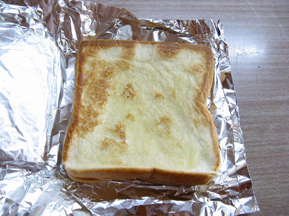 | アルミホイルを落ち着いて端から開くと、チーズトーストサンドがこんにちは。 あっち~けど、とろ~っとしてまーさんよー。 ここの自販機はチーズトーストとハムトーストがあり、どちらも300円ナリ。 ど~でもい~けど、 トーストの自販機は、この店の個体が日本最北だよ。 |