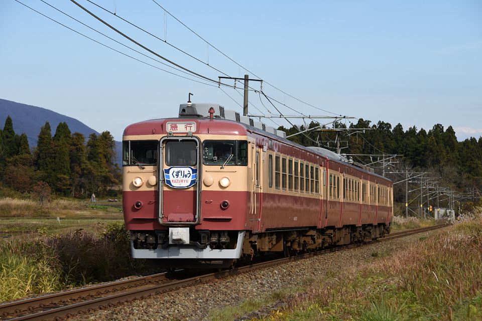 | 翌日も撮影。 今日もお天気がいいよ。 今日は先輩もご一緒してくれる。 まずは、昨日と同じ第4種踏切で、上りの快速を狙う。 今日のヘッドマークは「くずりゅう」だね。 この列車は写真(=静止画)に専念する。 |