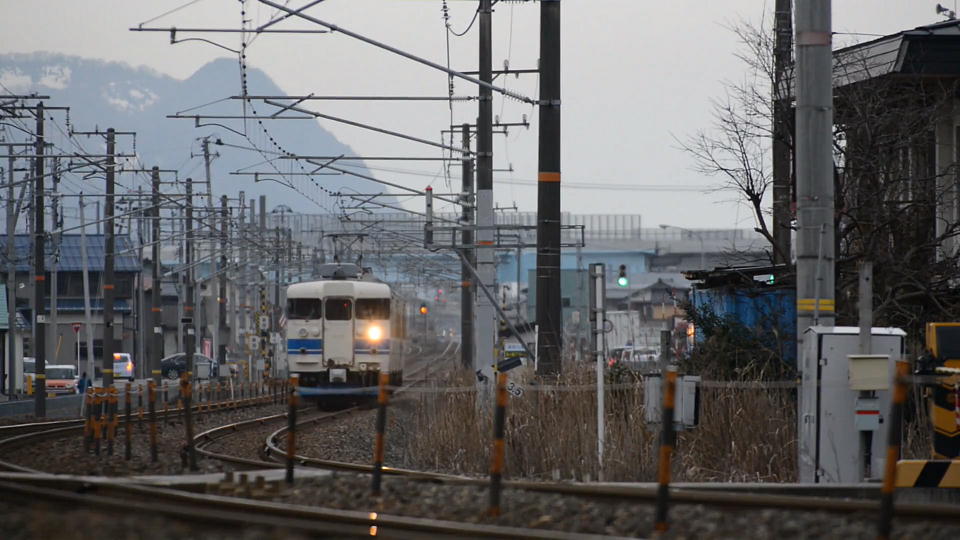 | 朝、新潟のアジトで準備をちゃちゃっと整えて出発した。 前回なんだかな~だった「急行2号」のデッドセクション通過を撮影する。 ヘッドライトが「片目」になってまた戻るのが分かるように撮影できてよかった。 約1分の動画はこちら。 ※当たり前ですが、この画像は合成です。 |