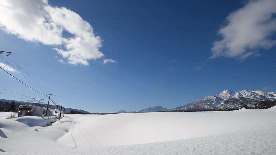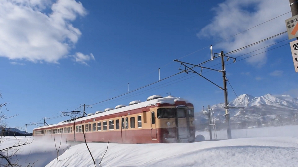 | 妙高山をバックに撮影しようと目星を付けていたポイントは どこも雪で封鎖されていて、クルマでは行けなかった。 そこで、以前撮影した第4種踏切の近くの第1種踏切で撮影することにしたのだが、 アングルの取り方にヒジョーにに苦労した。 なんせ雪が堆く積もっているので、 それより上にカメラを構えないとロクな撮影ができないのだ。 もっと長い三脚と脚立があればいいのだが…。 ムリなアングルで撮影した上り快速の約14秒の動画はこちら。 |