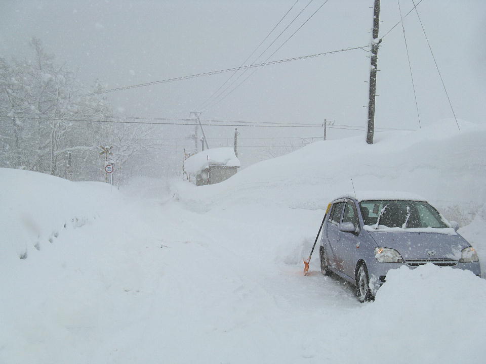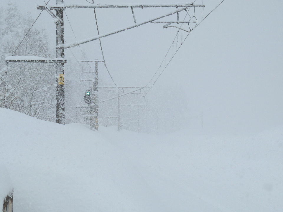 | 雪除け部隊がクルマ2台でやってきて、人海戦術で踏切周辺を整備し始めた。 「トキ鉄の方ですか?」と尋ねたら、「違う」ということだったので、 道路関係の会社の人たちかと思ったンだけど、 線路上に作業工程を書いたボードを置いて写真を撮っていたから、 トキ鉄の"社員"ではなくても、除雪の委託先かなんかだと思われた。 だとすると、まぁ確かに「トキ鉄の方」ではないわな。 俺に答えてくれた方は正直だったんですね(笑)。 トキ鉄に遅れが出てるってさ。 信号が変わっていないんだから上り列車は動きようがなく、遅れるのは当たり前だ。 状況を確認しに妙高高原駅に行ってみよう。 結果的には、最初にクルマを停めてから50分ほどで動かすことになり、 特に問題なく旧道まで戻れたよ。よかった…。 ただ、雪深いと道路と道路脇の雪の境目(=つまり道幅)がヒジョーに分かりにくく、 運転をちょっと間違うと道路脇の雪に突っ込みそうになるのが怖かった。 なんせホントに「白一色」なんだもんね。 |