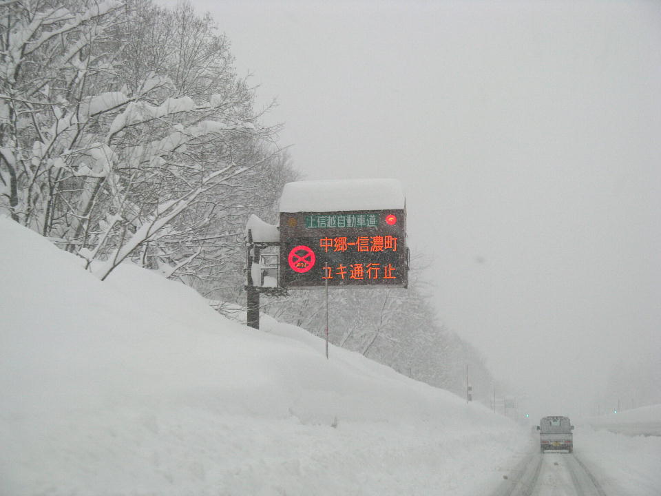 | 有間川のような海沿いは雪は大したことなかったが、 内陸の長野県境に差しかかるとやっぱり大雪。 高速も止まってら…。 |