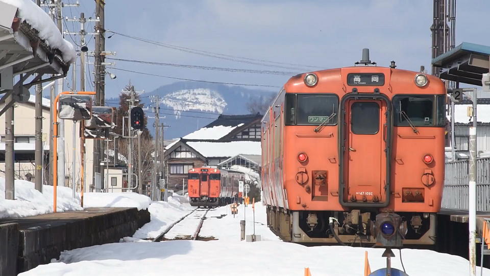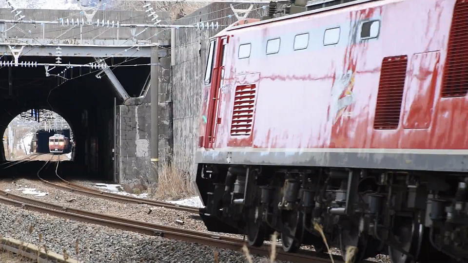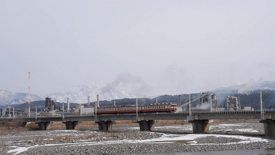 | のんびりメシを喰っていたらそこそこの時刻になり、 ちょっと急いで姫川に行き、「急行2号」を撮影する。 今日はバックが白くモヤッとしているが、 今後、青空と雪山をバックに改めて撮影したいね。 約20秒の動画はこちら。 |