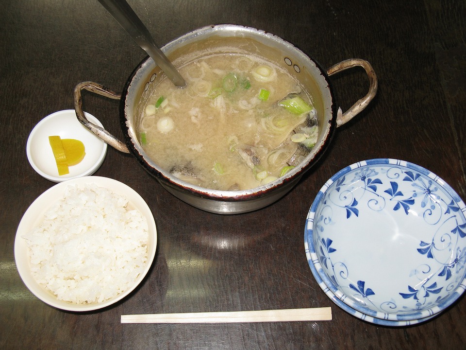 | 道の駅「越後市振の関」で車宿して朝を迎えた。 サクッと県境を越えて富山県に入り、 8時から営業している「栄食堂」でたら汁880円ナリ。 この辺の国道8号は「たら汁街道」とも呼ばれ、何軒かのたら汁屋がある。 さぶい冬にコイツを喰うとあったまるのだよ。 汁が入っている鍋も取っ手が曲がっていていい感じだね。 |