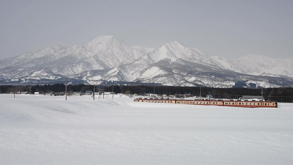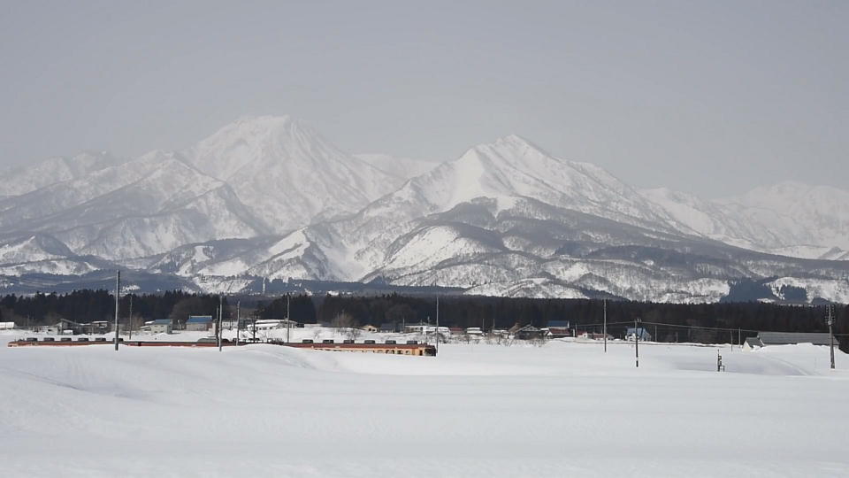 | 二本木駅近くのポイントに来てみた。 ここに着いたときは青空が少しあり、多少霞んでいたものの妙高山もまだよく見えていたのだが、 時間が経つにつれて曇ってきて、山の霞も濃くなってきてしまった。 上り快速が雪の中に埋まっていくような約17秒の動画はこちら。 |