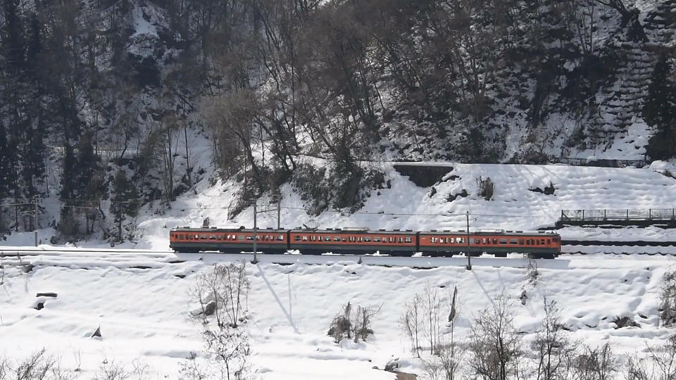 | 【おまけ】 信州に帰りがけに、しなの鉄道の115系を撮影する。 もう既に新車が入り始めていて、他にもあった懐かしい塗装の編成が 徐々に引退しているので、今見ることができる残りの編成の活躍もそう長くはない。 今日は、俺の大好きな湘南色がいいタイミングで運用に入っている。 この色は雪景色に映えるよね。 綠の季節はあまりパッとしない。 約18秒の動画はこちら。 ここへ来るときに通った古間の「お立ち台」にはたくさんのテツがカメラを構えていた。 バックの黒姫山(くろひめやま)はそこそこ見えていたから 頻繁には来られないテツなら選びたくなるポイントだろうね。 俺はもう卒業した場所だ(ジモティの余裕(笑)。)。 せっかくだからこの湘南色が長野で折り返してくるのも撮影したいので、 それまでの2時間弱を使ってメシを喰いに行こう。 |
