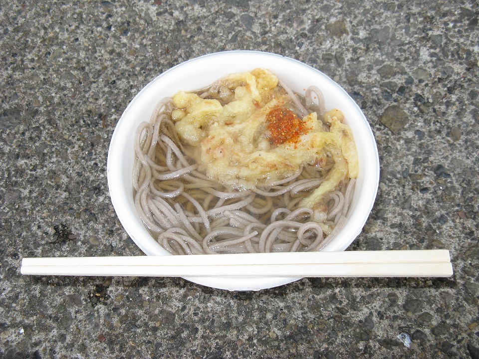 | 天ぷらそば250円ナリ。 つゆをかんます前なので、色が薄いままだよ。 |