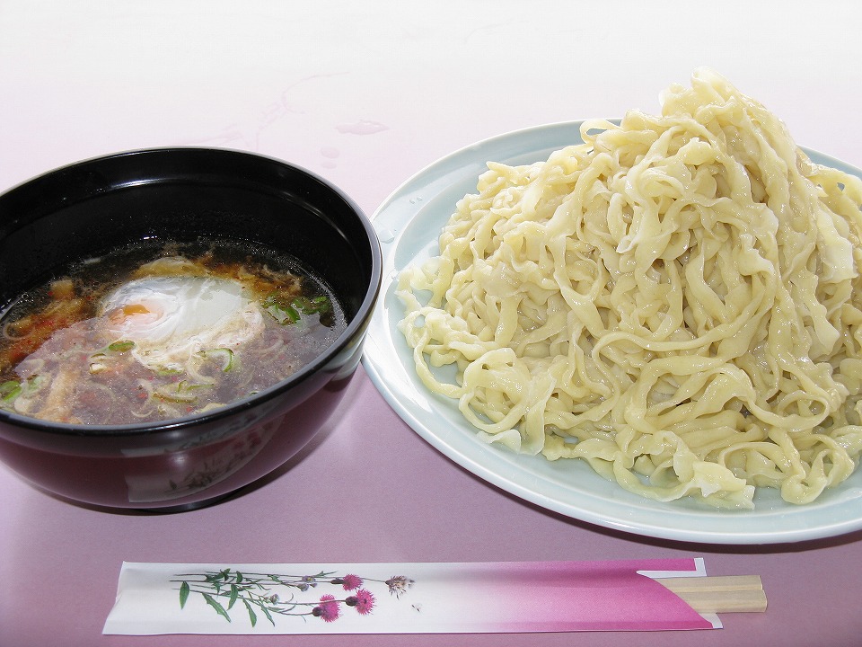 | 中野市の「丸長」で大好きなつけめんを喰う。 写真は大盛玉子950円ナリ。 いつもは中盛なのだが、今日は随分ハラが減っているので大盛にした。 …でもちょっと多かった。完食はしたけど。 この店はわざわざ来ないといけないような場所にあるんだが、いつも混んでいる。 今日も11:30頃にはだいぶ「待ち」が入っていた。 俺はその直前に入店したので、アブナイところだった。 |