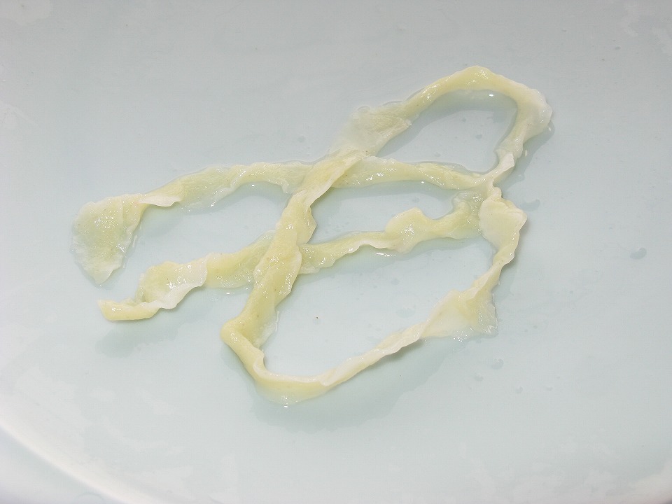 | 魅了される独特の極太麺。 一般的な「麺」の形状とはかけ離れているが、 もちもちとした弾力があって実に旨い。 |