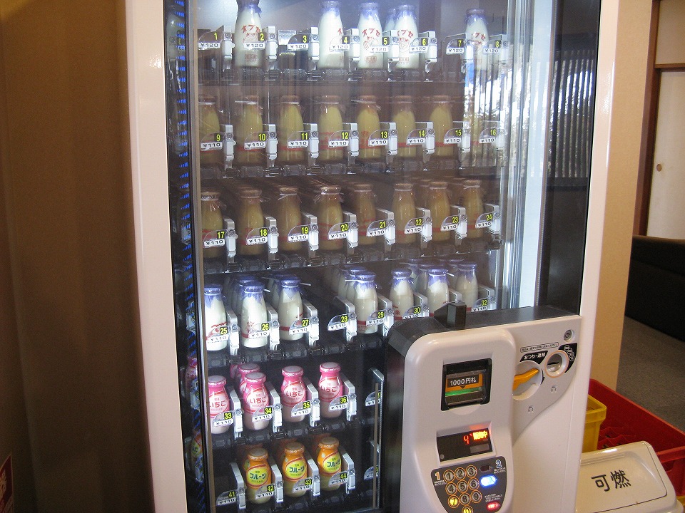 | メシを喰い終わっても電車の時間までまだだいぶあるので、 温泉にも入っちゃえ、ってんで「ぽんぽこの湯」にボチャッと浸かった。 施設はリニューアルされて、温泉名入りのタオルの販売がなくなってしまったのは残念だが、 瓶牛乳は健在だ。 白牛乳は、ほぼ地元の「オブセ牛乳」120円ナリと、 茅野市の「八ヶ岳牛乳」110円ナリの2種類を揃えているところが大したもんだね。 以前はどれも100円だったんだけど、ビミョーに値上げしていた…。 |