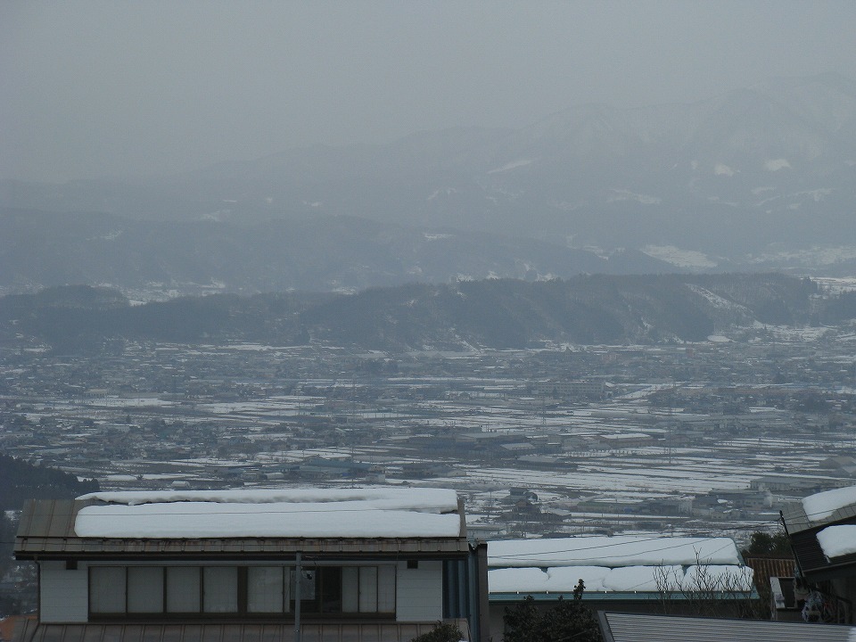 | 「ぽんぽこの湯」の浴室からは北信州の山並みがよく見える …んだけど、今日はダメだねぃ。 浴室から撮影はできないので、 この写真は「ぽんぽこの湯」の近くでイメージ的に撮影したもの。 |
