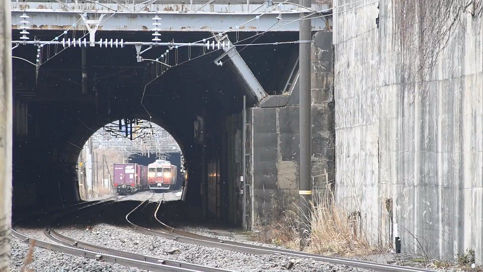 | 折り返しの下り快速はちょっとだけ場所を変えて、やはり車内から撮影。 かなり強い雪が降っているが、俺は車内でのほほんとしていられるのがありがたい。 約18秒の動画はこちら。電車の通過後に信号が青から赤に変わるのも分かるよ。 この場所は写真より左はずっと雪の壁になっており電車が来るのが見えない。 雪は音を吸収するので、電車が近付いてきてもほとんど分からず、 いきなり現れるから動画の撮影開始が難しい。 まあ、電車が来る前から録画しておいて、後で無劣化編集してもいいんだけど、 俺は原版での無駄な録画時間を極力避けたいのだ。 電車の通過音があまり聞こえないが、それだけ音が雪に吸収されているということ。 クルマの窓は開けている。 ところで、この場所で待機している間、テツが何人か撮影ポイントとして「探り」に来たが、 俺は駐車スペース(といってもほんの2台ほどだが。)の入口を塞ぐカタチでクルマを停めていたので、 みんな諦めて移動していった。 こういう風に停めないと車内からの撮影ができないのよ。ゴメンね。 でも、結果的にスチールで撮影するテツが寄りつかなかったので シャッター音が入らない撮影ができたのはよかった。 |