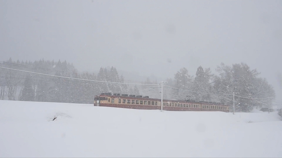 | 今日も昨日に続いて二本木駅近くを選んだが、 山々は全く見えないので昨日とは別の「雪原」で撮影する。 上り快速が通る時刻が近付くにつれて雪が強くなってきたので、 急遽クルマの中から撮影することにした。 今回はコンデジではなく、デジイチをカーボン三脚に据えた。 約13秒の動画はこちら。 |