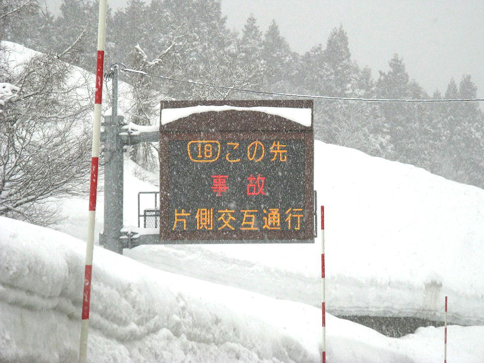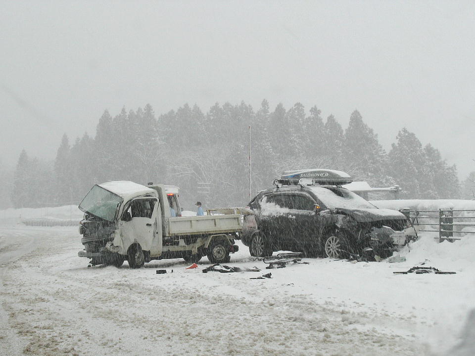 | 翌日、大荒れになる予報なので喜んで(コラ)出かけた。 国道18号で事故っだって。 |
