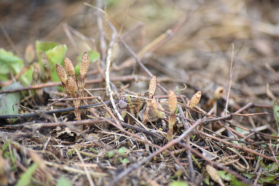 | 第1種踏切のそばには、つくしんぼが生えてきていた。 春が近いねぇ。 |