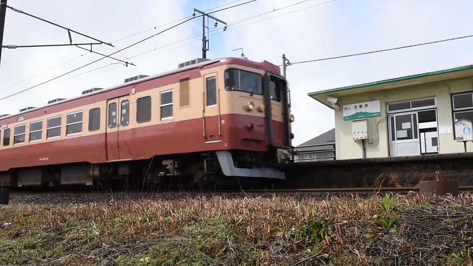 | 快速では唯一の通過駅である北新井で上りを撮影。 1か月ちょっと前に来たときは雪を溶かすスプリンクラーをメインにしたが、 今回は列車をメインにした。 約12秒の動画はこちら。 |