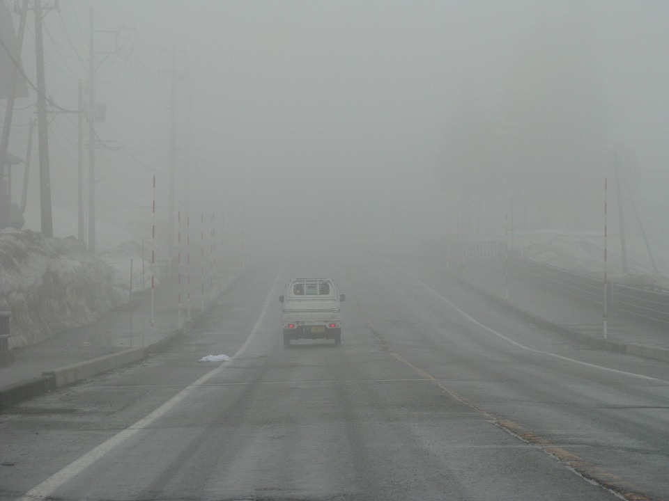 | 新潟県境を越えて妙高高原に入ったらキリだ。 なかなかの濃さなのでおもしろい撮影ができるかとワクワクする。 |