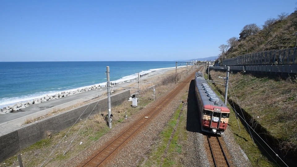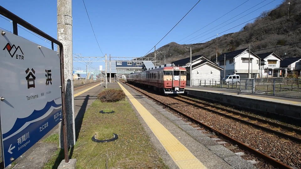 | 浦本駅での撮影後はもう信州に帰ろうと思い、 国道8号を直江津方面に向かって走っていたら、 谷浜駅でまだ撮影していないことに気が付いたので、 急遽、「急行3号」の通過を撮影することにした。 ただそれだけといえば、ただそれだけ。 約20秒の動画はこちら。 |