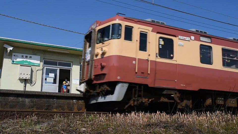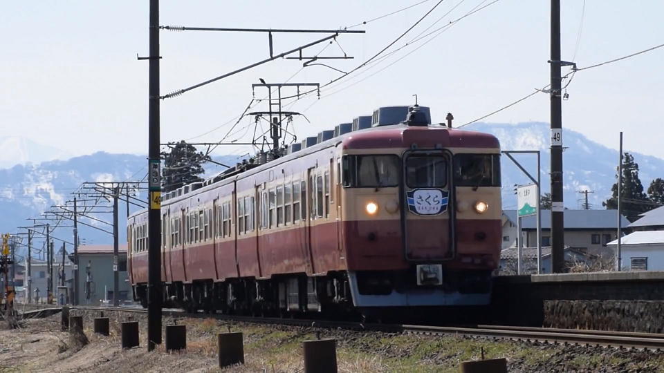 | 「急行2号」は、以前の撮影が今イチだった 浦本駅の通過の撮影に再チャレンジしてみる。 今度はまーまーかな。 気温が上がってきて、画がユラユラしている。 これは、いわゆる「コンニャク現象」ではないからね。 600mm相当で撮影した約35秒の動画はこちら。 ちなみに、今日は直江津方のクモハ413にも「さくら」の ヘッドマークが付いている。 「さくら」のフォントが筆字体っぽいのが、他のヘッドマークと違うところ。 |