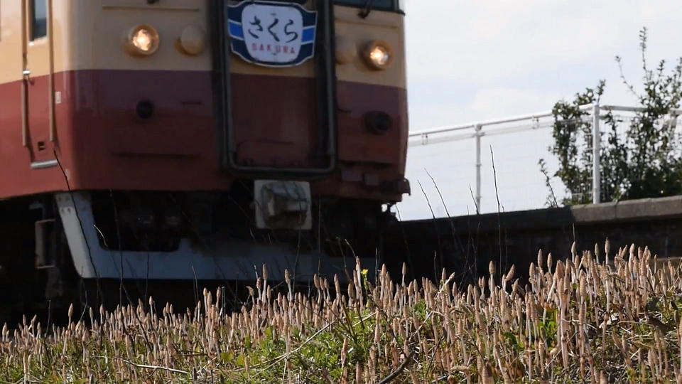 | 昨日失敗した、つくしを入れての快速との撮影に再々チャレンジした。 今度はまーまーかな。 上り快速が通過する約10秒の動画はこちら。 |