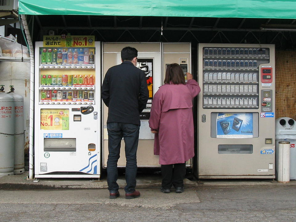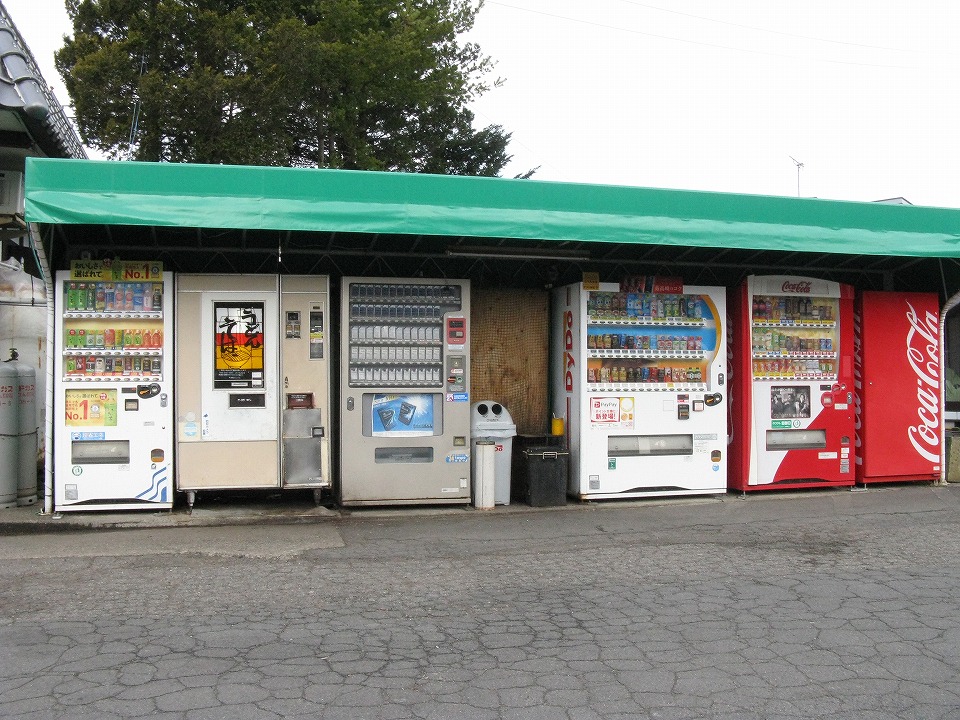 | 「う・そ自販機」と肩を並べる、飲み物やたばこの自販機。 お札が使えない「う・そ自販機」の両替機的な役目もあるよ(笑)。 |
