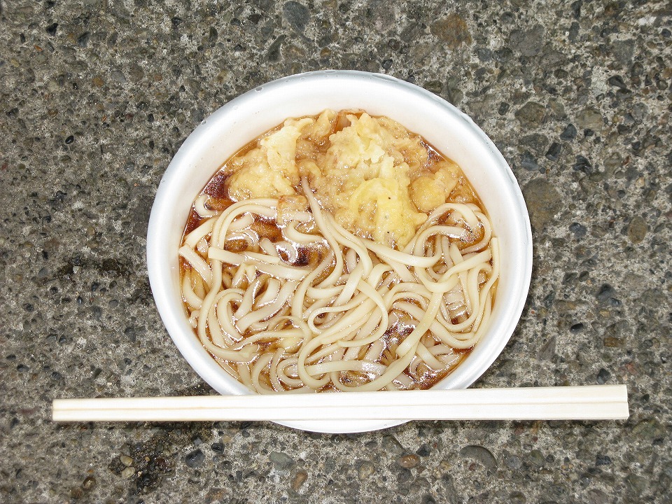 | うどんにしました。 今回は七味をかけずに撮影したけど、 画的に締まらないもんだね…。 |