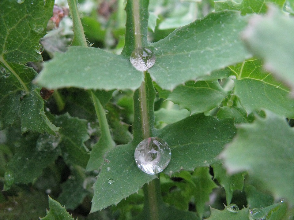 | 上越市内の公園脇で、雨の中、 葉桜になりかけた桜と上りの快速を慌ただしく撮影したが、 露出がドアンダーになっちゃったのでUPはなしね(苦笑)。 代わりに?芽生えたばかりの葉っぱに雨粒が溜まって水玉になった写真でごまかします。 |