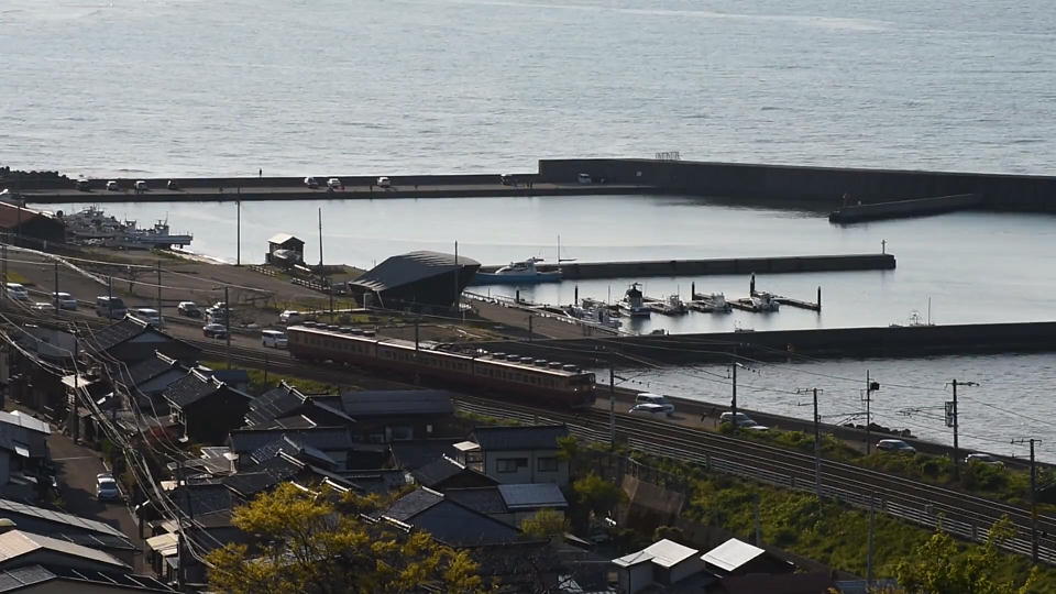 | 「急行3号」は海をバックに撮影。 約10秒の動画はこちら。 |