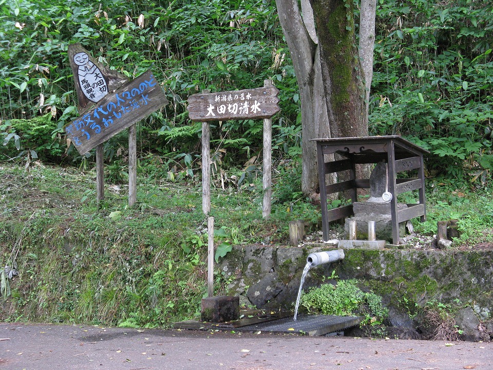 | ハラごしらえをしたら、ウォーミングアップとして しなの鉄道の115系のすれ違いを狙ったんだけど 全然ダメだったのでUPは、なし…。 新潟県に入り、国道18号からちょっと逸れて 「大田切清水」でペットボトルに水を汲ませてもらった。 もちろんこの場でも飲む。 クセが全くなく、冷たくて旨いのだよ。 |