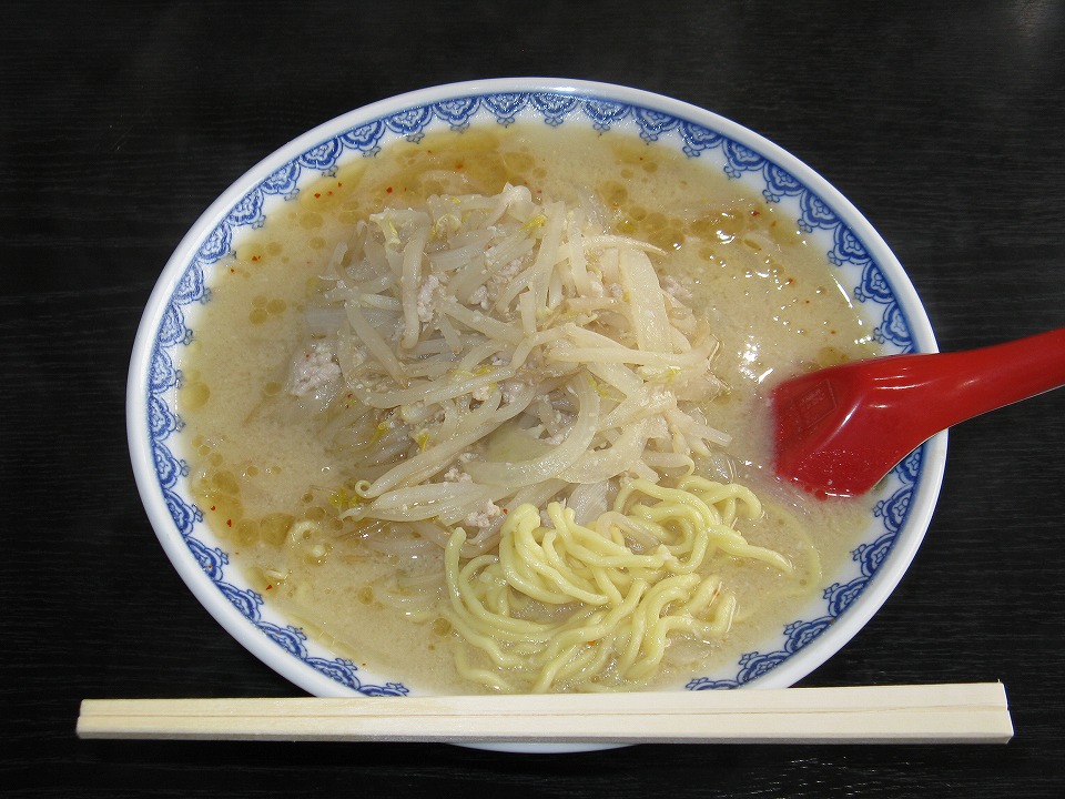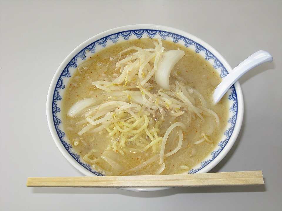 | はしごで、すぐ近くの「ミサ」でもみそラーメンを喰う。 ほとんど似ているが、実は似て非なるラーメン。 丼は「ニューミサ」と同じか? 決定的なのはタマネギの切り方がデカいことと、 甘いスープの中に少し酸味を感じることか。 これも、撮影用に麺をほじくり出した。 並(860円ナリ)でも結構な量なので、「半玉」700円ナリにした。 |