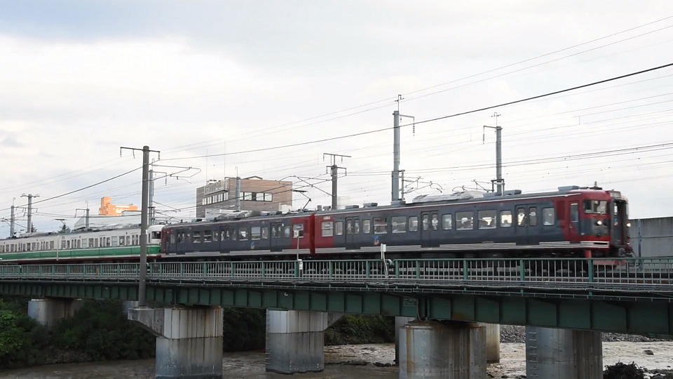 | 【おまけ】 晴れそうな週末を前に、金曜日のシゴトを終え、 先輩にもご同行いただき、 るんるん気分でまずは軽~くしな鉄を撮影する。 異なるカラーの編成の約19秒の動画はこちら。 |