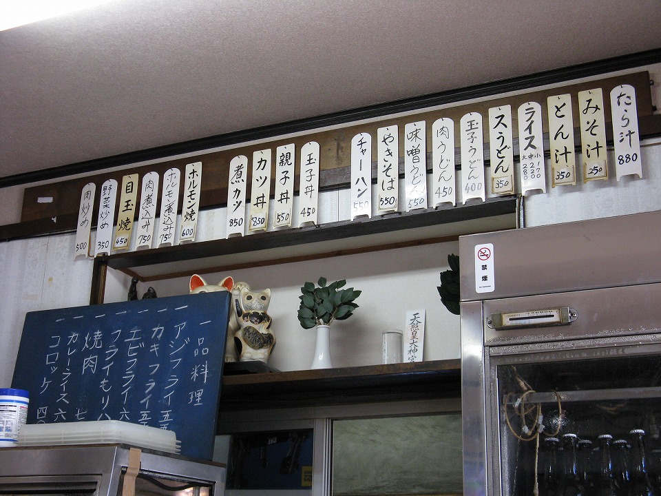| 「急行1号」の撮影が終わったら、中華そば「立川」でのんびり昼メシ。 あっさりラーメン780円ナリ。 醤油味と塩味の中間のようなスープでなかなか旨いんだが、 俺にはちょっと辛(から)かった(=しょっぱかった)。 口コミなどを見ても同じような感想がカキコされているので、 だいたいそー(なつかしい…。分かるヒトにだけ分かればいいですからね。)なんだね、きっと。 さて、メシを喰ったら「急行2号」以降はパスして信州に帰りますよ。 |