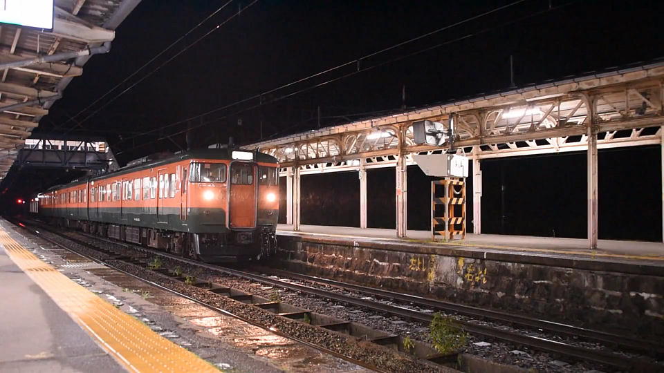 | 妙高高原行きの「夜行急行」は、 直江津を22:00に発車することは分かっているが妙高高原の到着時刻が分からないので、 ひとまず通常の鈍行の所要時間と同じぐらいと見込んで、ホームに来てみた。 テツも少しずつ集まってきた。 入場券はちゃんと買ったよ(くどいか)。 はたして「夜行急行」は。23時前になってが到着した。 到着後ほんの数分だけ115系のしなの鉄道356Mと並び、 356Mはほどなく長野に向かって発車していった。 「夜行急行」到着時の約37秒の動画はこちら。 |